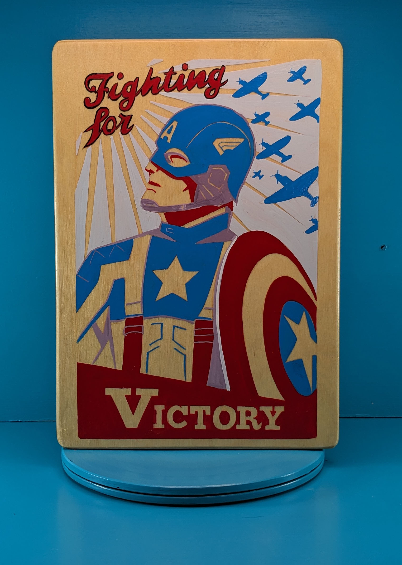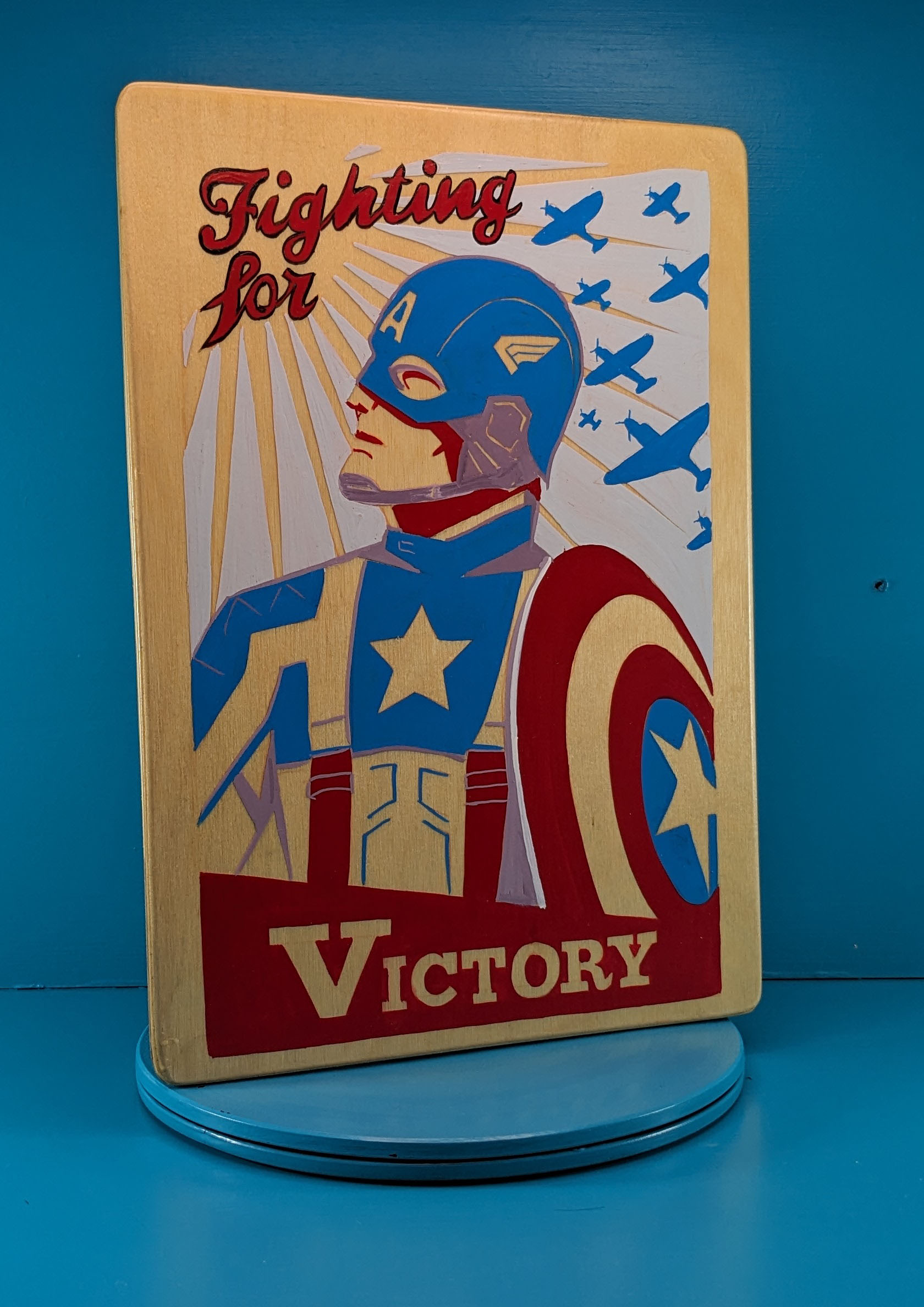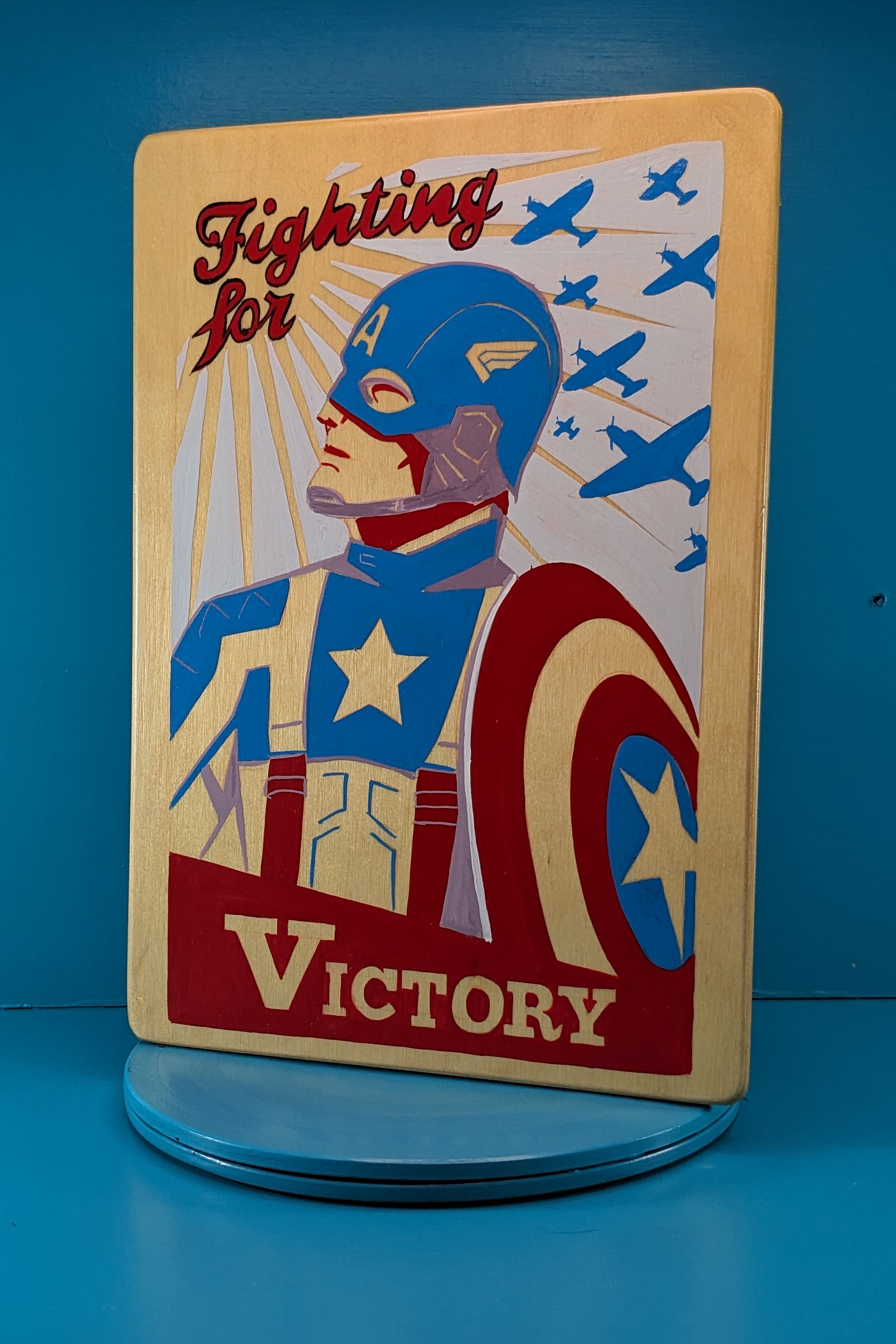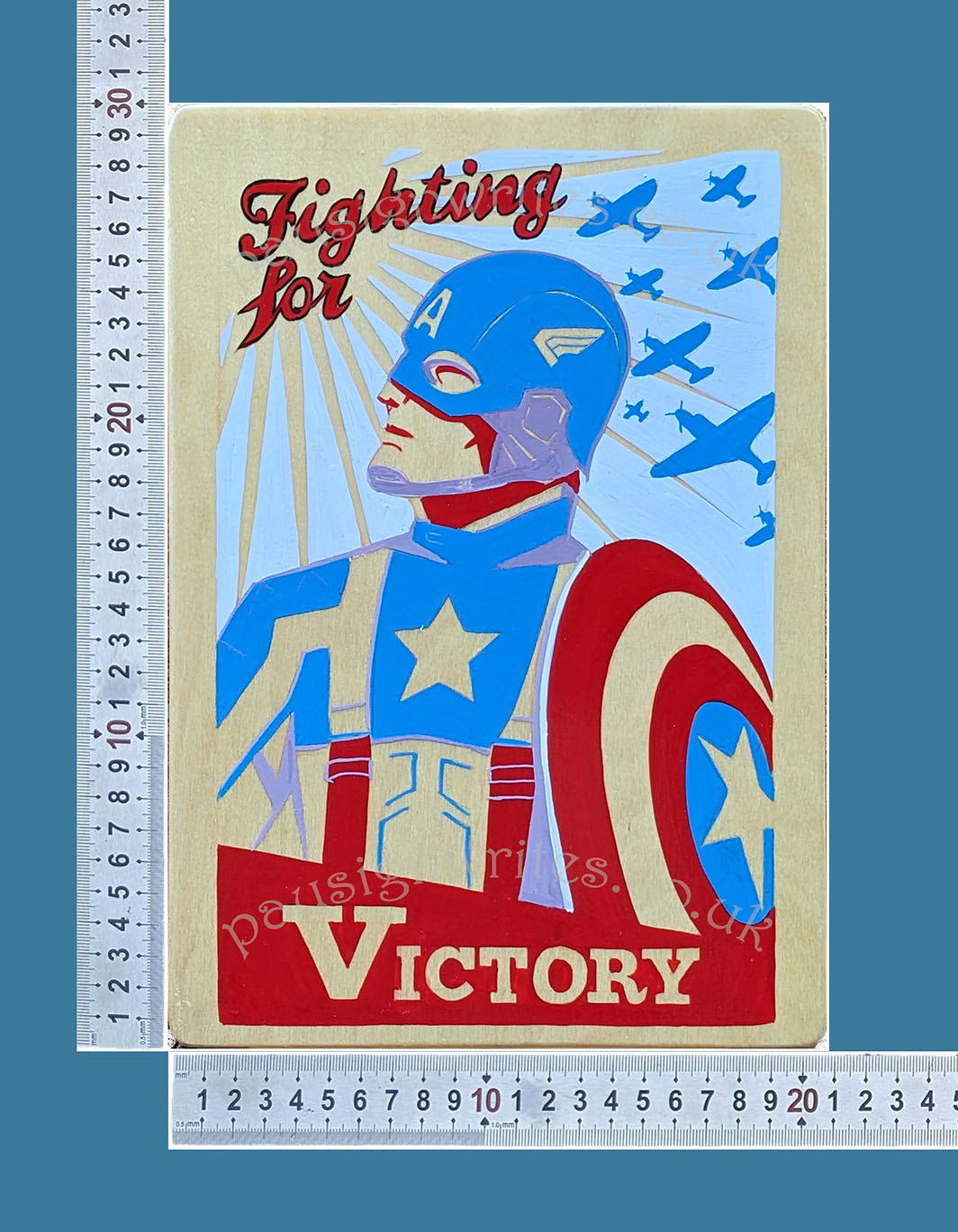 This ‘Fighting for Victory’ sign is my artistic interpretation of the original vintage-style propaganda poster featuring Captain America which instils a message of victory, hope and optimism for a positive outcome.