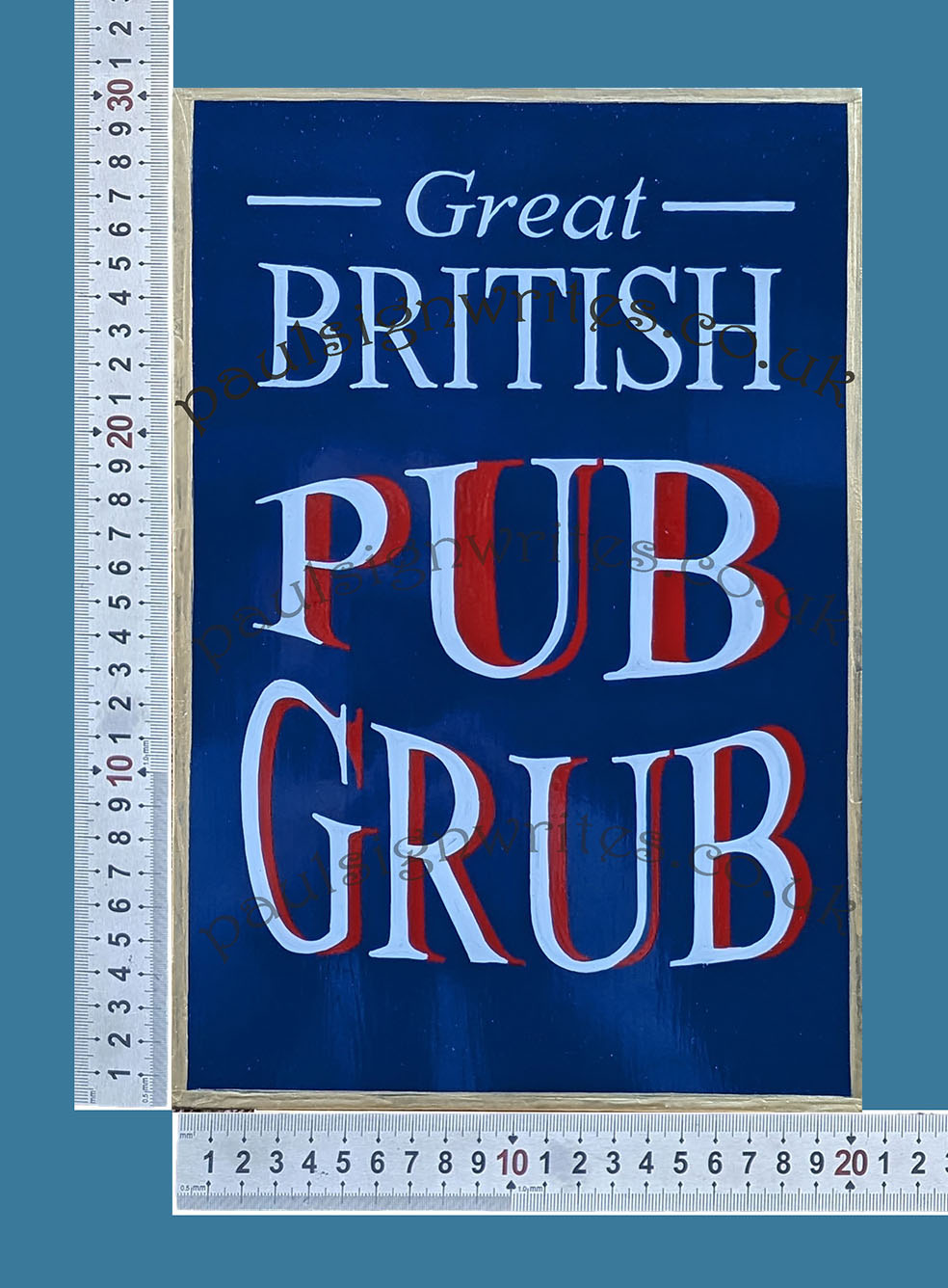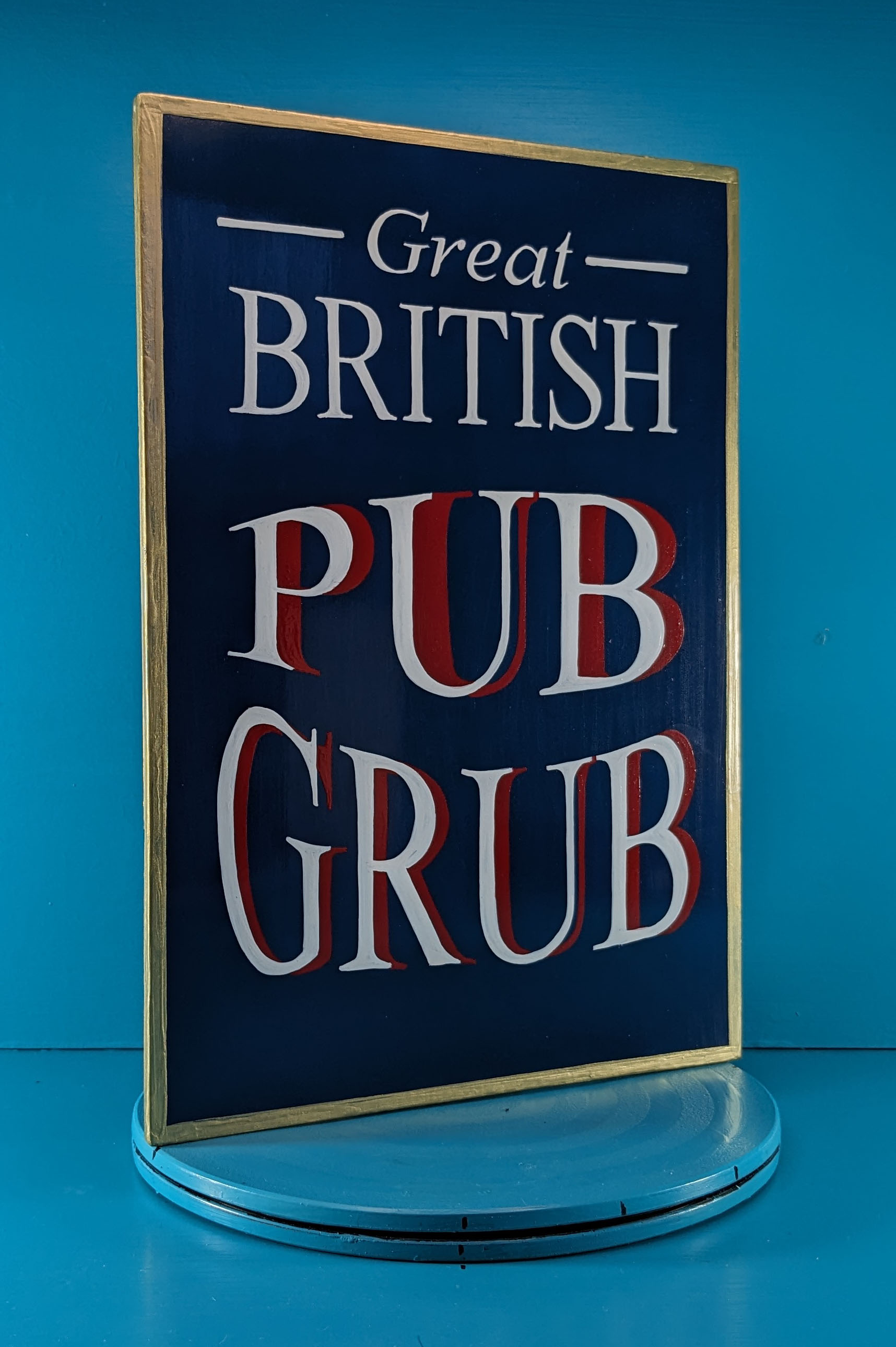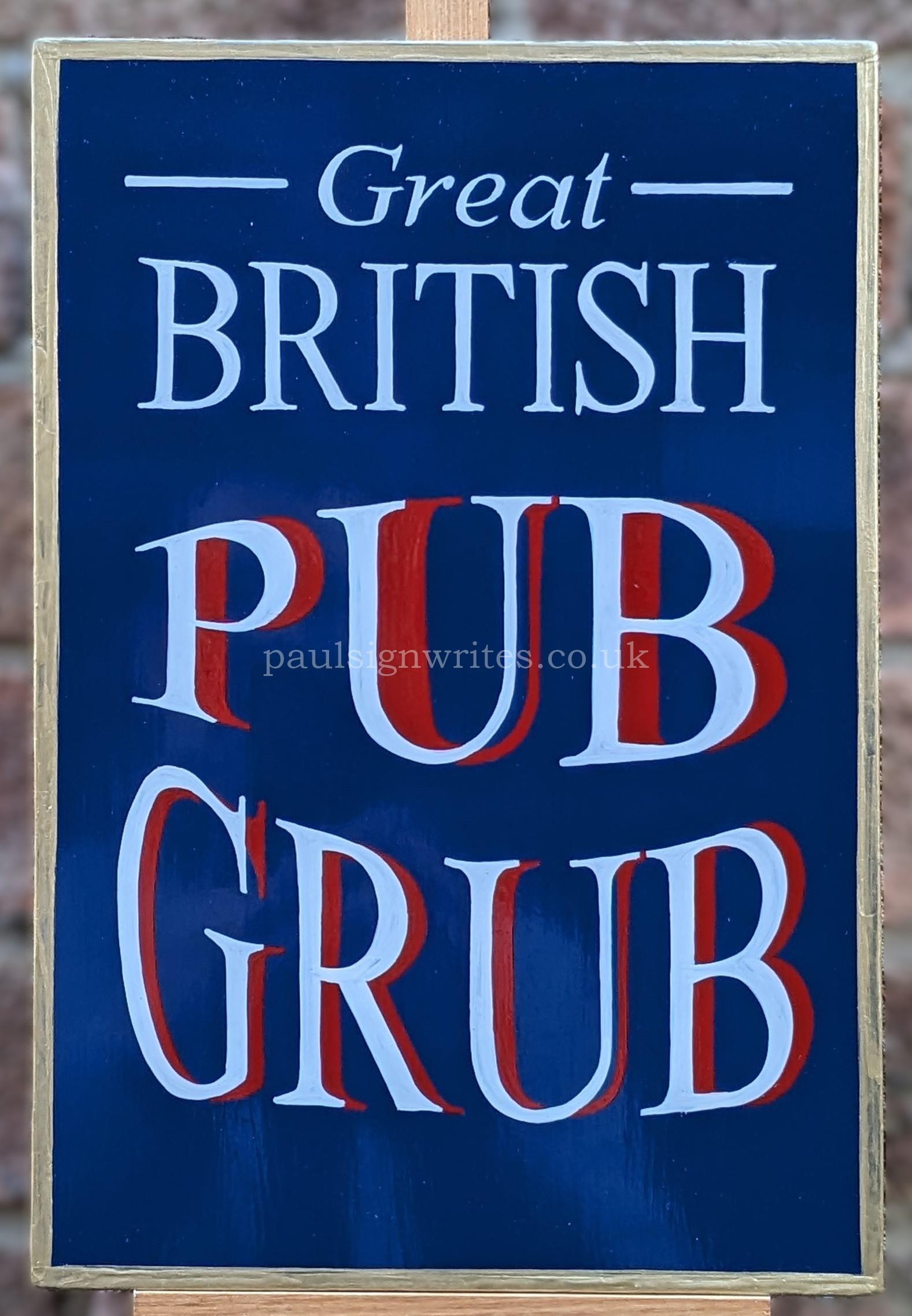 This hand painted 'Great British Pub Grub' sign is painted on a 21cm x 30cm Mdf panel.