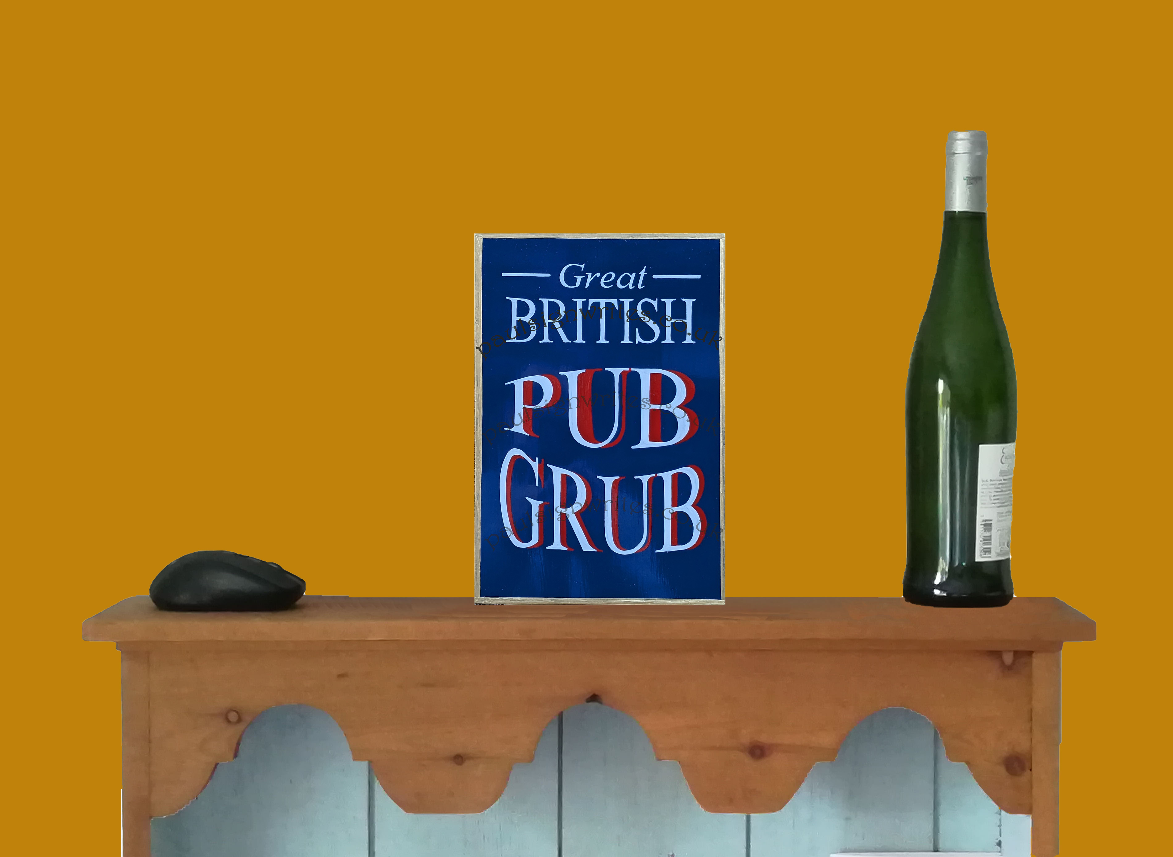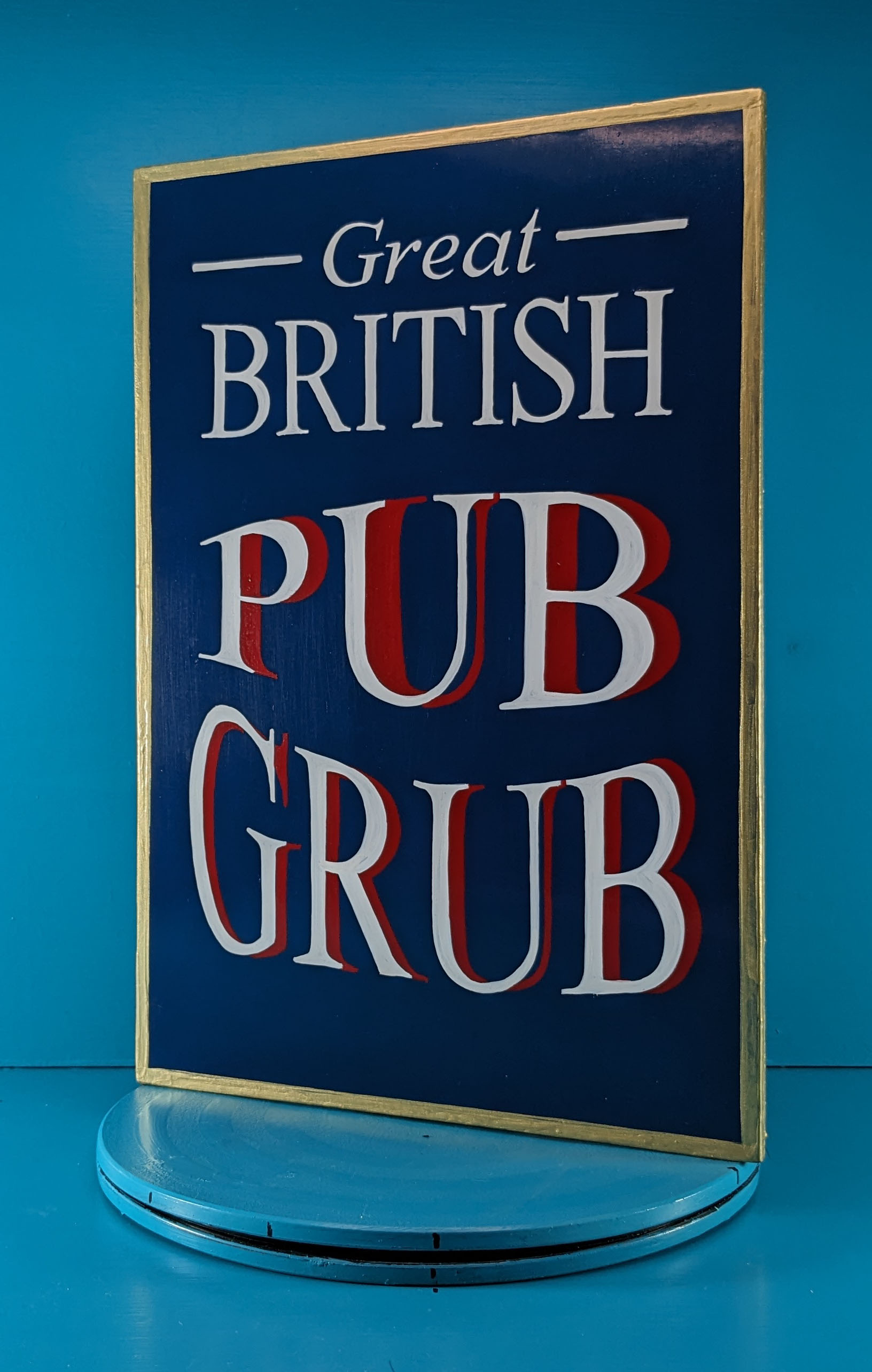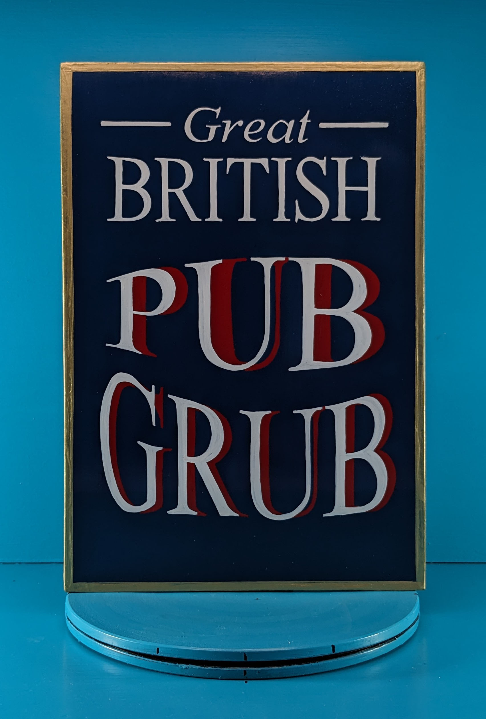 This hand painted 'Great British Pub Grub' sign is painted on a 21cm x 30cm Mdf panel.