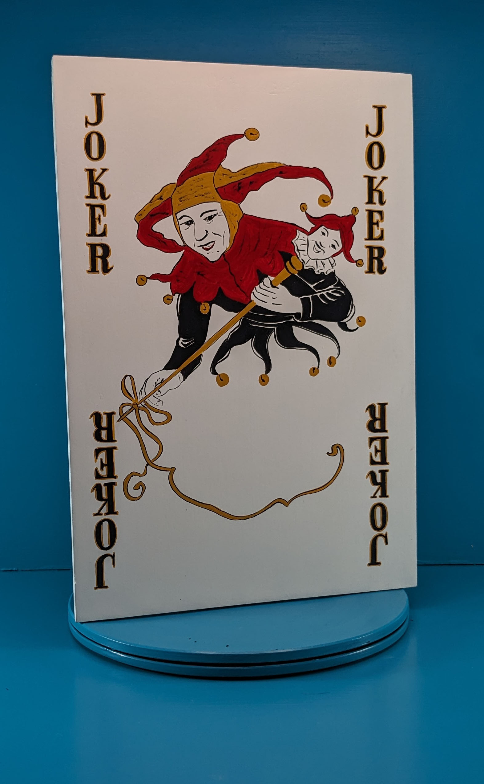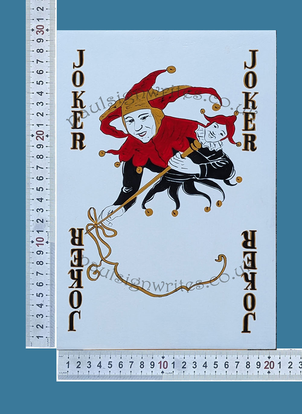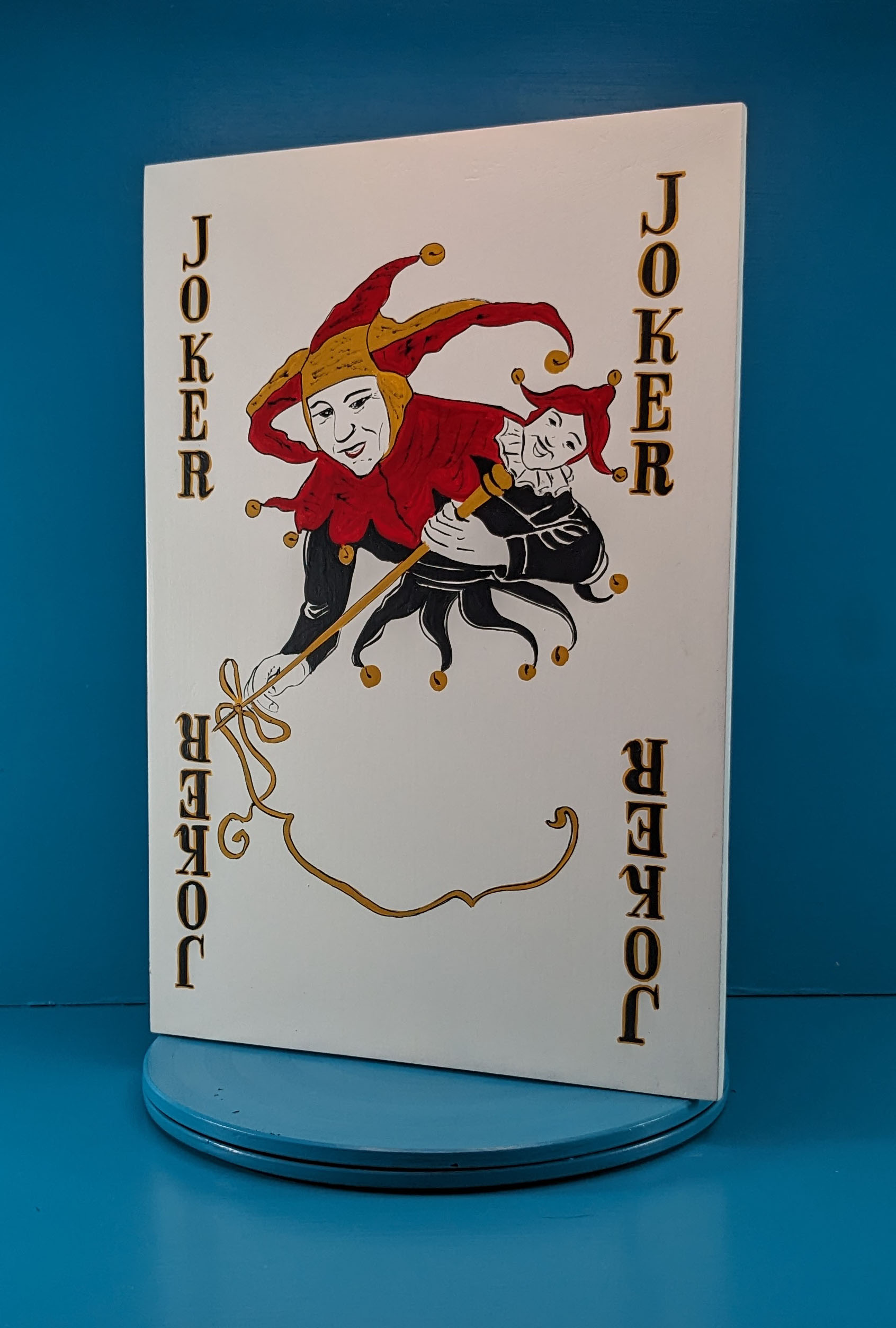 Add a touch of individuality for your home or office with this unique hand painted 'Joker' playing card sign, this sign is ideal for any playing card enthusiast, lover of sign art or collector of the quirky. The sign measures 30.5 cm in height and 20.5 cm in width, making it the perfect size to fit any room. Whether you are a fan of card games or simply appreciate decorative pieces, this sign is sure to add personality to your space.