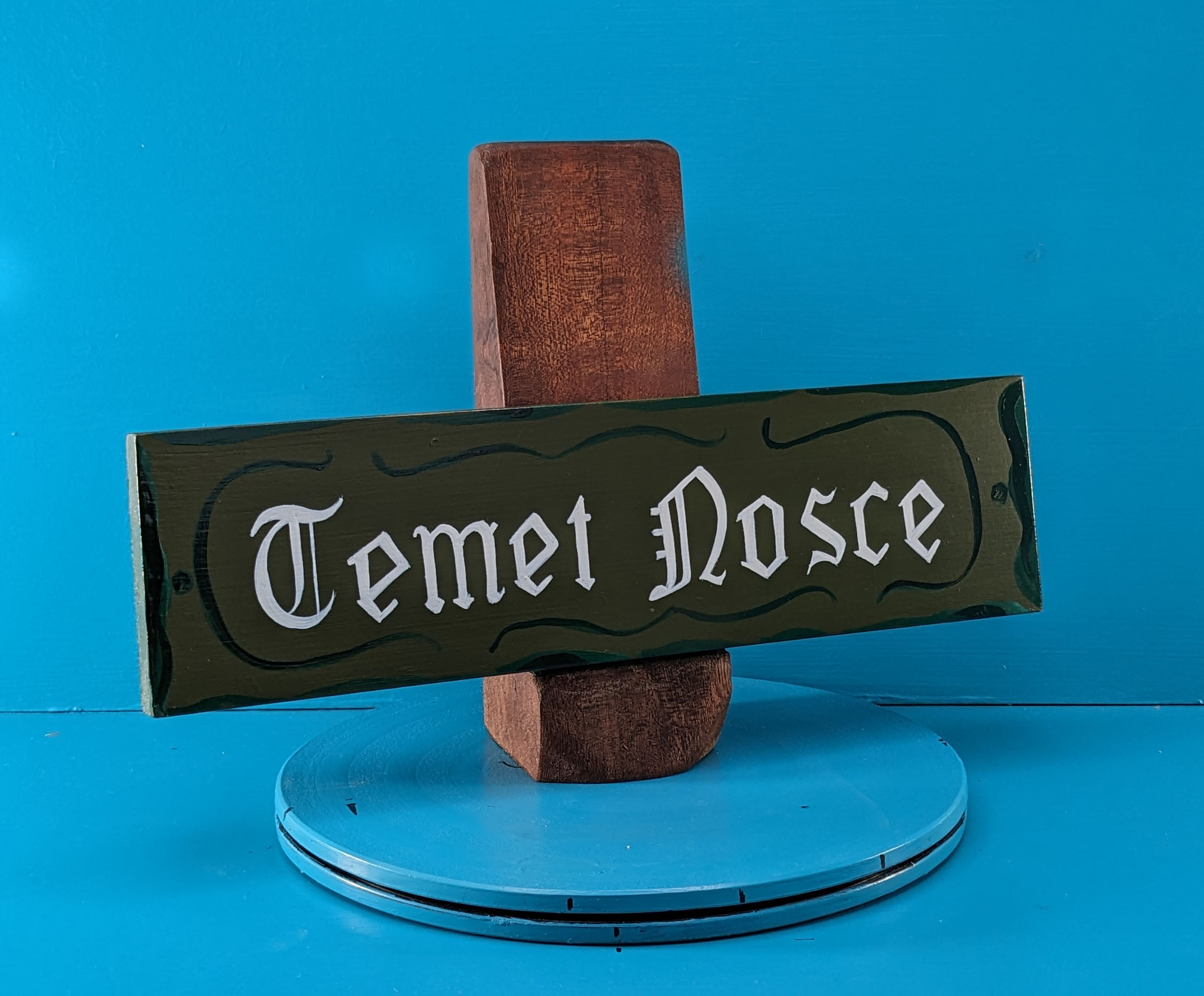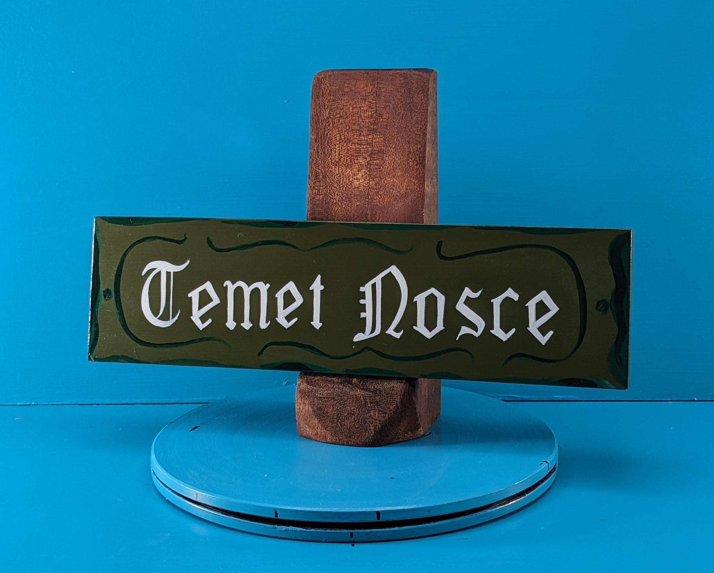This hand painted 'Temet Nosce' sign is my take on the sign which hangs above the Oracle's kitchen doorway in the first Matrix movie.