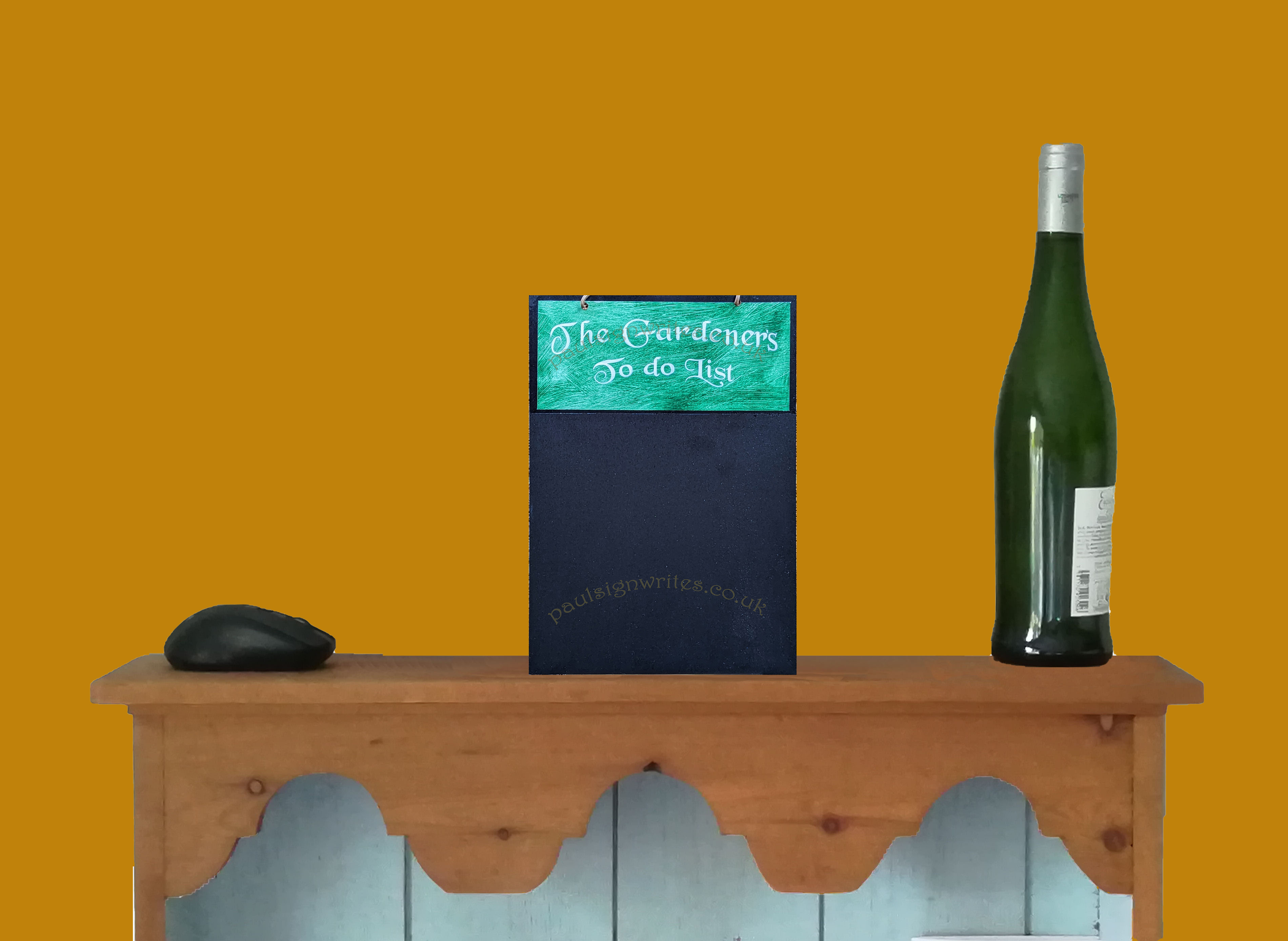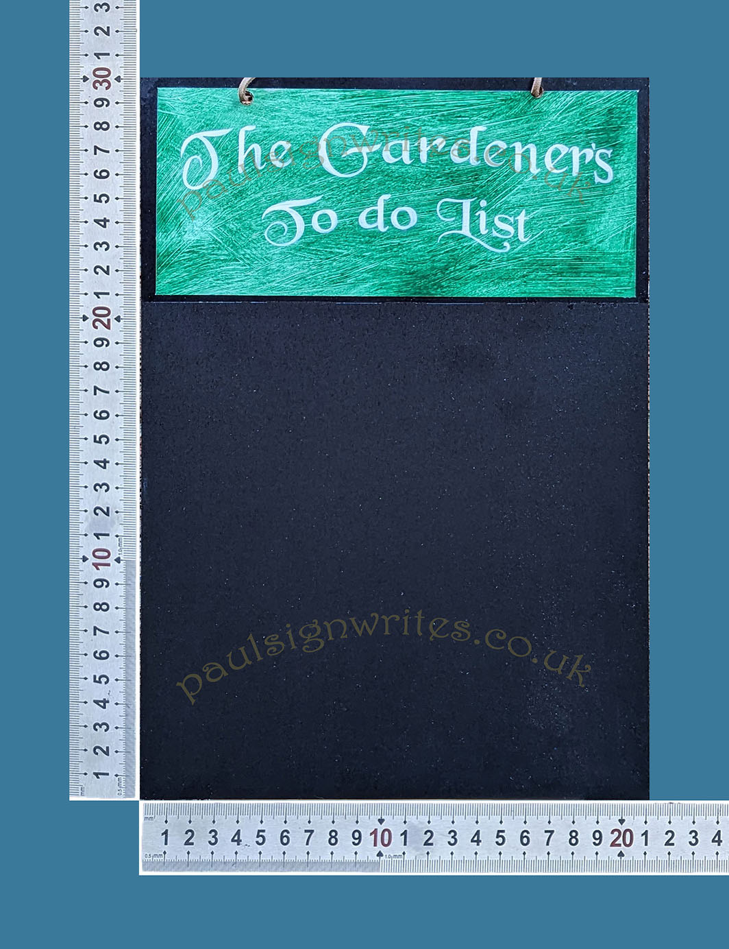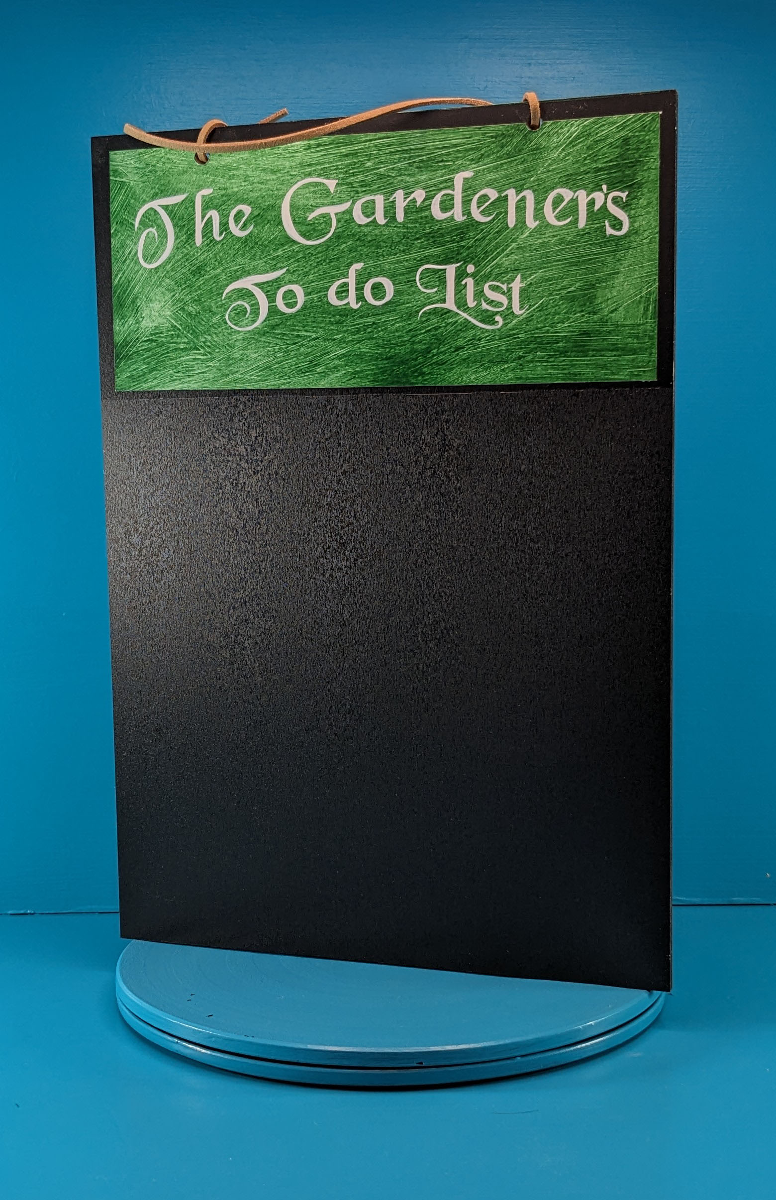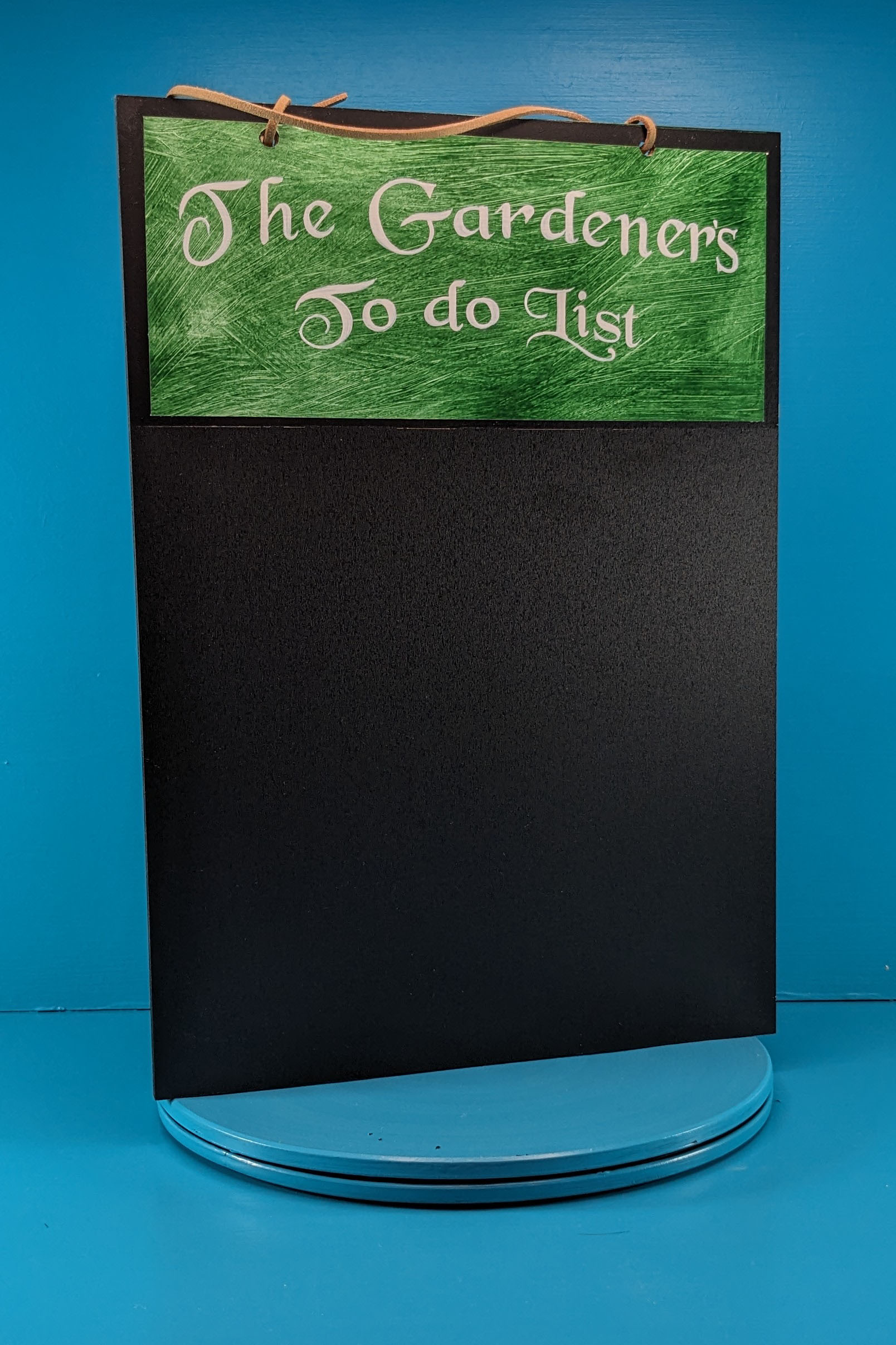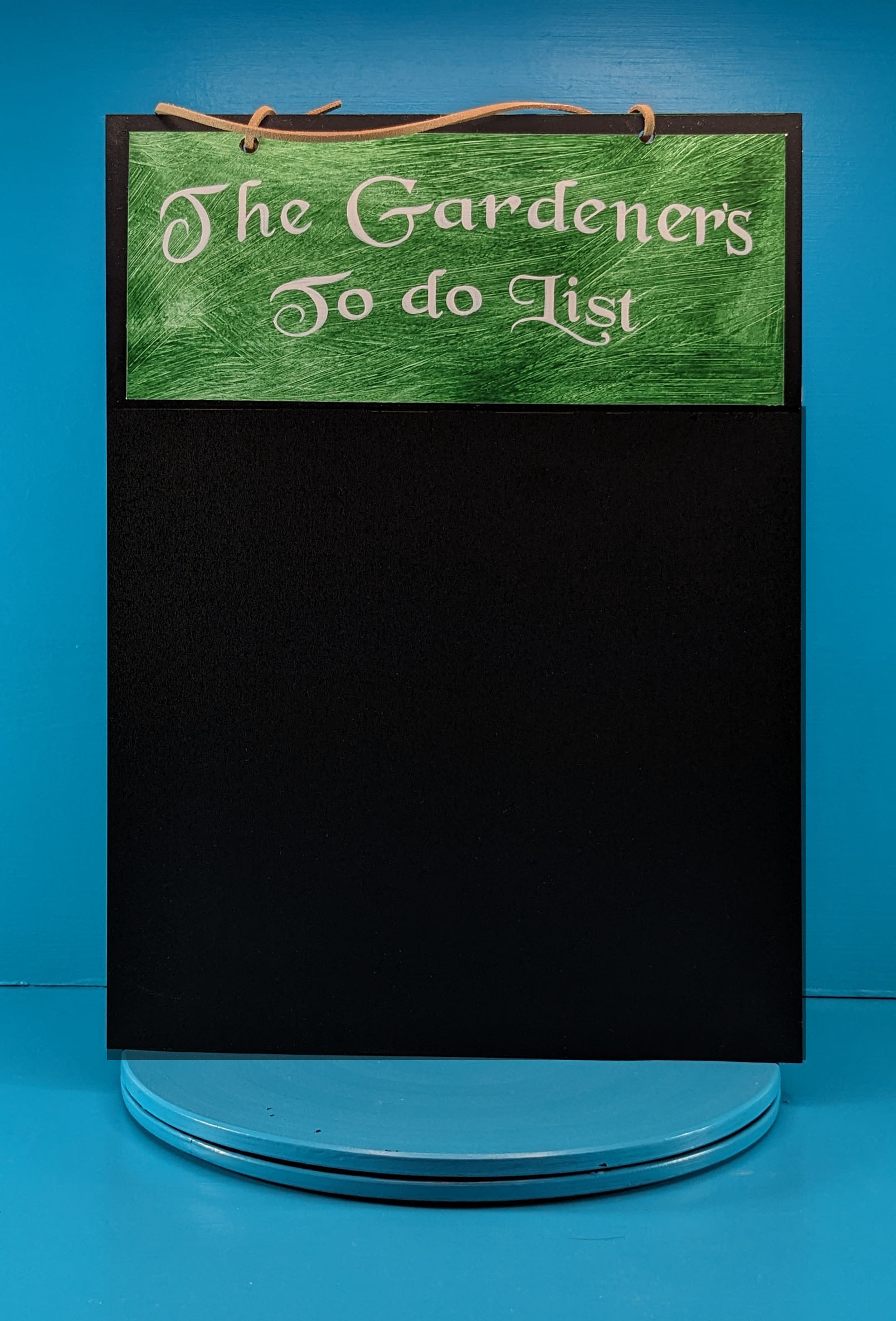 This unique blackboard, The Gardener's To Do List, is a perfect addition to any home or gardener’s shed. I purchased the blackboard panel as a finished product as it has an easy clean matt black chalking surface which is suitable for both liquid chalk pens or traditional chalk. I painted the decorative green panel and added the white lettering with the signwritten words "The Gardener's To Do List", the sign comes with a hanging suede leather string for easy mounting on the wall.