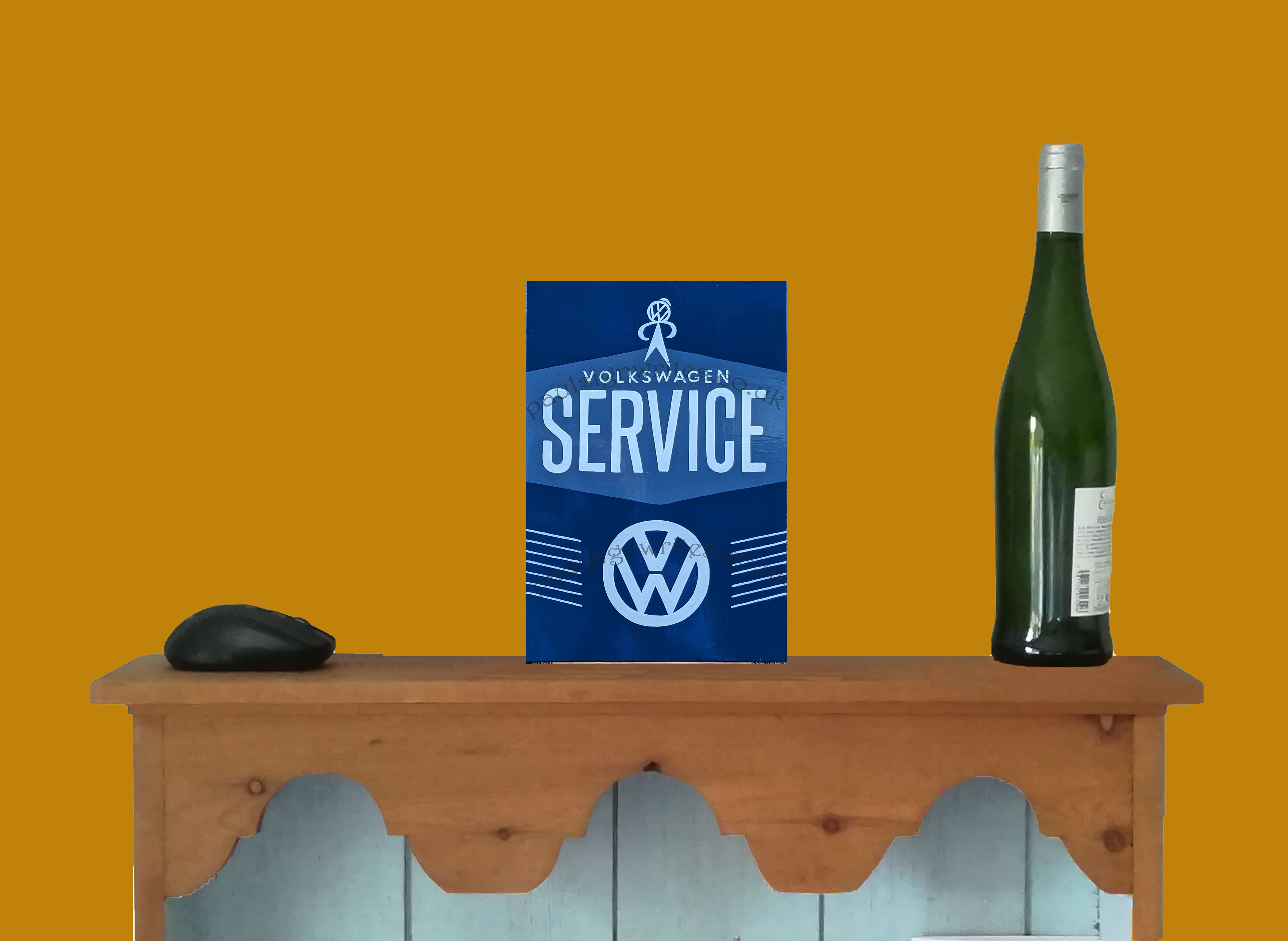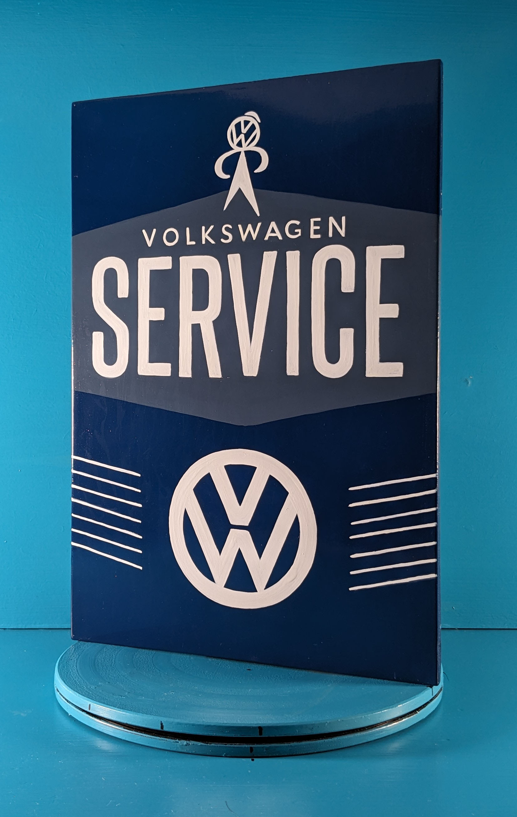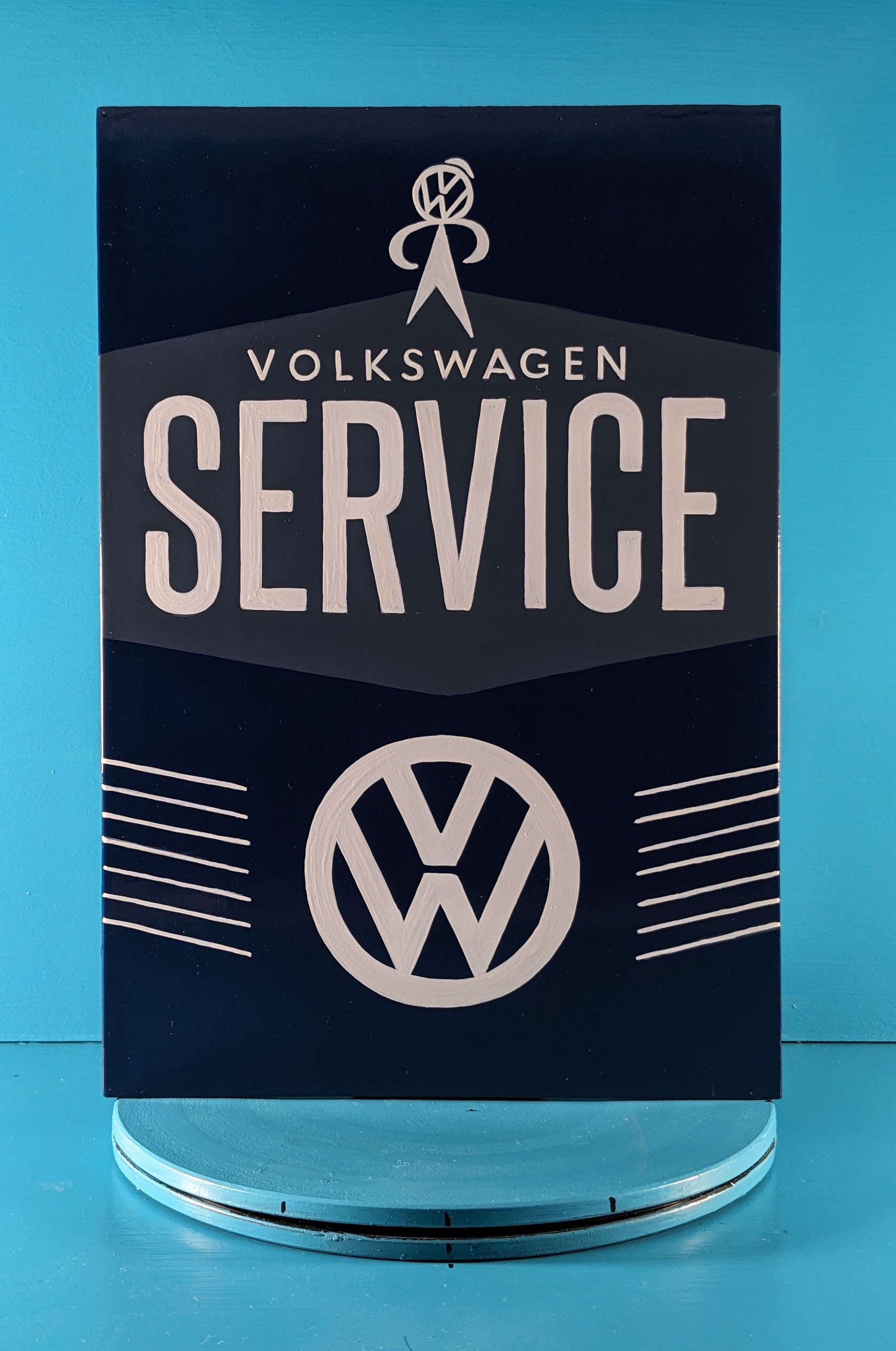 This ‘VW Volkswagen Service’ sign is both tactile and aesthetically attractive and is my artistic interpretation of this historic sign.