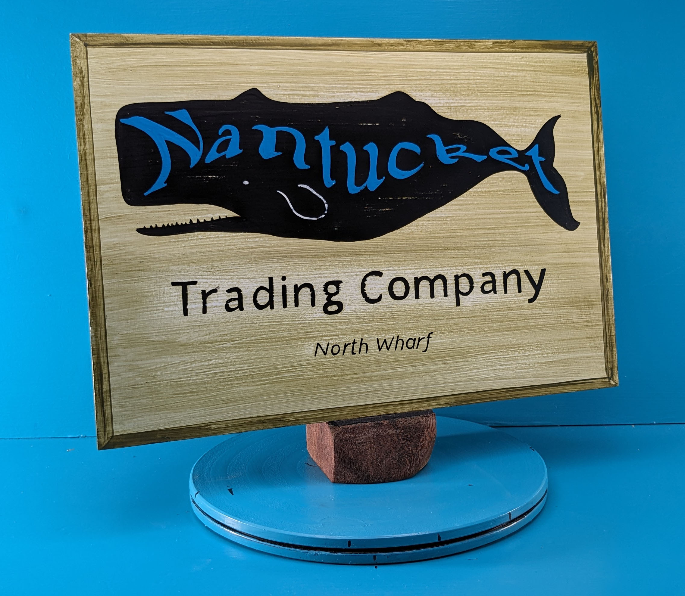 This elegant hand painted Nantucket Whale sign makes a unique and eye-catching piece for our home decor. All aspects of this sign are hand painted and including the distressing. The wavy ‘Nantucket’ lettering painted along the length of the whale is about saying the whale is the sea and the sea is the whale, both belong to the other.