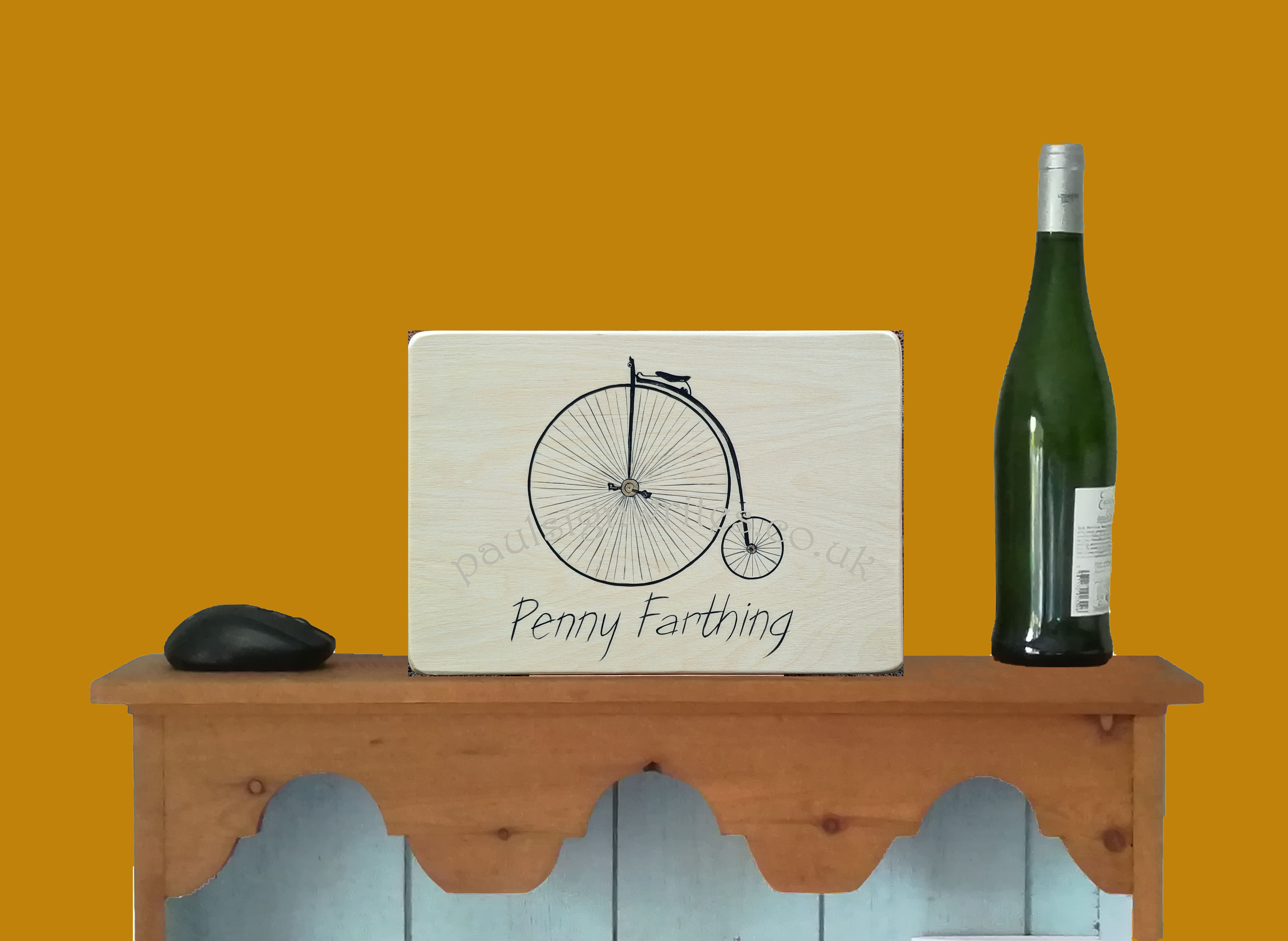 This elegant hand painted Penny Farthing bicycle sign makes a unique and eye-catching piece for our home decor. The sign is made of high-quality maple plywood and has a varnished satin finish. The sign can be either wall mounted or free standing, this 21 cm x 30 cm and is perfect for any room and adds a touch of vintage charm to your home decor.